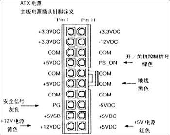 ③+3.3V(橙色线)。目前CPU、AGP的电压越来越低,因此新的ATX规范增加了+3.3电压,这样就不用由+5V转为+3.3V了。