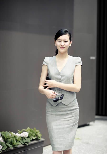 优雅的套装穿着起来很有气质 优雅的套装穿着起来很有气质,窄裙勾勒出优柔的女性线条。
