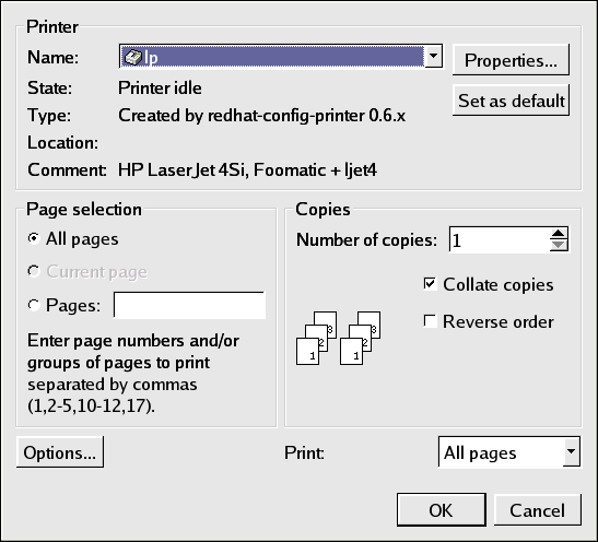 你还可以直接从 shell 提示下打印文件。例如,lpr sample.txt 命令会打印 sample.txt 这个文本文件。打印过滤器决定文件的类型并将其转换成打印机能够理解的格式。