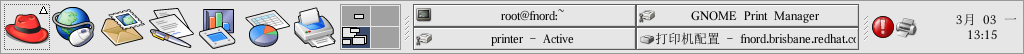 如果你运行的是图形化桌面环境,点击面板上的「打印机管理器」图标来启动 GNOME 打印管理器,如图 8-7所示。