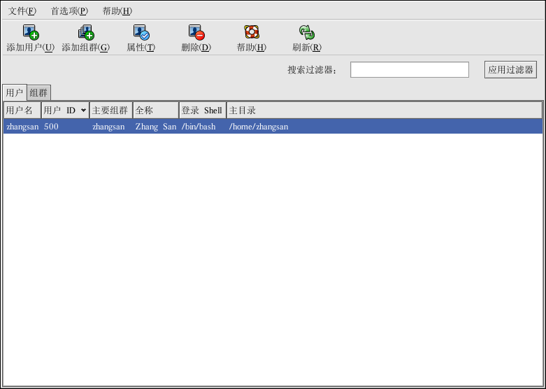 你也可以在 shell 提示下键入redhat-config-users 来启动 用户管理器