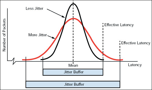 为了尽量减小抖动产生的影响,VoIP系统采用了抖动缓冲器。抖动缓冲器接收进来的语音包,语音包可能以没有规律的时间间隔到达,但经抖动缓冲器处理后,可以按有规律的间隔重新发送,从而让优先处理的语音数据声音自然。
