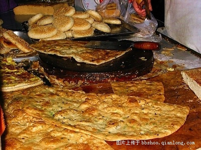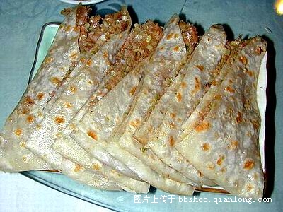 中国匹萨——糊饼 哈哈,老北京都知道的一道著名的食品就是糊饼啦,因为和匹萨一样,是馅放在面上的。