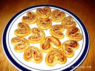 蝴蝶酥因其状似蝴蝶而得名。其口感松脆香酥,香甜可口,具有浓郁的桂花香味。
