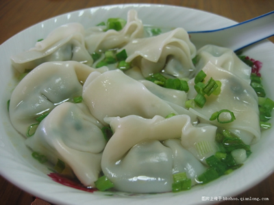 北京的馄饨四季常有,肩挑担卖馄饨的小贩很多。《故都食物百咏》中说:“馄饨过市喊开锅,汤好无须在肉多。今世不逢张手美,充饥谁管味如何!”(注:张手美,唐朝长安著名的制作小吃的高手。)并注说:“沿街叫卖者,不如饭馆所制之佳。然唤到门首,咄嗟立办,用以充饥,亦殊方便也。”从诗和注中可以很形象地看到卖馄饨的情景了。他们肩挑担子,一头架锅内煮一只鸡,一头有案板和馅儿等物,一面包一面煮,十分方便。但最有名的首推东安市场附近的“馄饨侯”的馄饨。挂着蓝地白边白字的布,上写“馄饨侯”三个字。汤是鸡汤,馄饨包得皮薄馅儿足,肉多而不腻,汤浓而不浑,佐料与众不同,用好酱油、陈醋、豌豆苗儿、上等紫菜、晶黄整齐的虾米皮,货真价实,物美价廉,一直经营到半夜。吃馄饨的人很多,老主顾可以记账,等有钱的时候一起付账,生意十分红火。一些大饭庄也有馄饨的供应,如前门外的致美斋饭庄供应的馄饨就很出名。《都门杂咏》中记载说:“包得馄饨味胜常,馅融春韭嚼来香。清汤润物休嫌淡,咽后方知滋味长。”