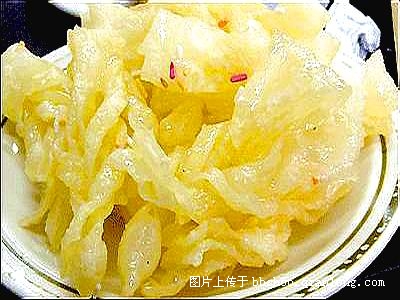 芥末墩儿是满族家常风味小吃,以大白菜为主料,加芥菜、白糖、醋等,经沸水浇后闷制而成,是北方过春节时重要的下酒菜。宮廷御宴的八道首碟头一个就是芥末墩儿。梅兰芳宵夜也经常吃芥末墩儿。