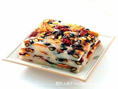 它的做法是生栗子去皮蒸熟烂后捣成泥,并准备好京糕切的大片和澄沙馅,将200克栗子泥分成3份,用一份摊开为底层,接着铺一层京糕片,再用一份抹平在京糕片上,再抹一层澄沙馅后,最后一份栗泥抹在最上层,上面用切成小菱角形的京糕片和细青梅丝拼成图案,就成了上、中、下为黄色,中间夹有红、褐两色五层的栗子糕了。吃时,用白糖和糖桂花熬成的糖汁浇在上面即可。