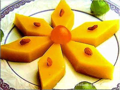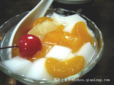 杏仁豆腐色泽白洁,口感细腻润滑,甘甜醇厚,清凉可口。有润肠、养肺、止咳的功效。