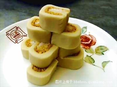 芸豆卷是民间小吃,传说是慈禧太后听见宫外有小贩叫卖,便召进宫内品尝,觉得很好吃,于是命令御膳房专门制作,芸豆卷成了慈禧的御前御点。 芸豆卷色泽雪白,质地柔软细腻,馅料香甜爽口。