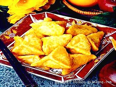 炸三角距今有一百多年的历史了。 表面焦脆而不硬,味道清香鲜美。以前北京的大街小巷经常听到“油炸的,三角哇,虾米韭菜馅的”的吆喝声。清《帝京岁时记胜》中写:“正月荐新品物,则青韭卤馅包,油煎肉三角”。