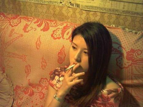 你看那个背景。也许是个KTV的包房,也可能是某宾馆的沙发。。。。