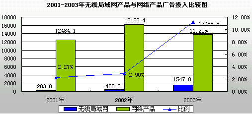 2001-2003年中国大陆无线局域网产品广告投入费用表