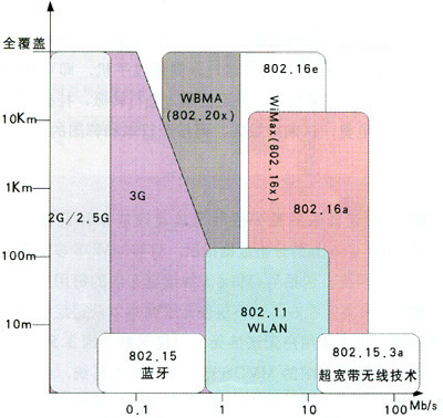 图1 各种技术标准的覆盖范围和数据传输速率之间的关系