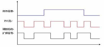 PN序列用算法产生一个伪随机数,该伪随机数通过一个二进制编码过程与二进制数据流组合在一起,产生一个带宽扩展、功率电平降低的DSSS信号。这个DSSS信号有一个内建的冗余因子,使得同一时间内发送的信号中至少包含10个原始信号的拷贝。