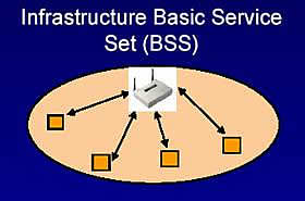 按WLAN的运行方式,可以建立三种拓扑结构:基本业务组(BSS)、独立基本业务组(IBSS)和扩展业务组(ESS)。